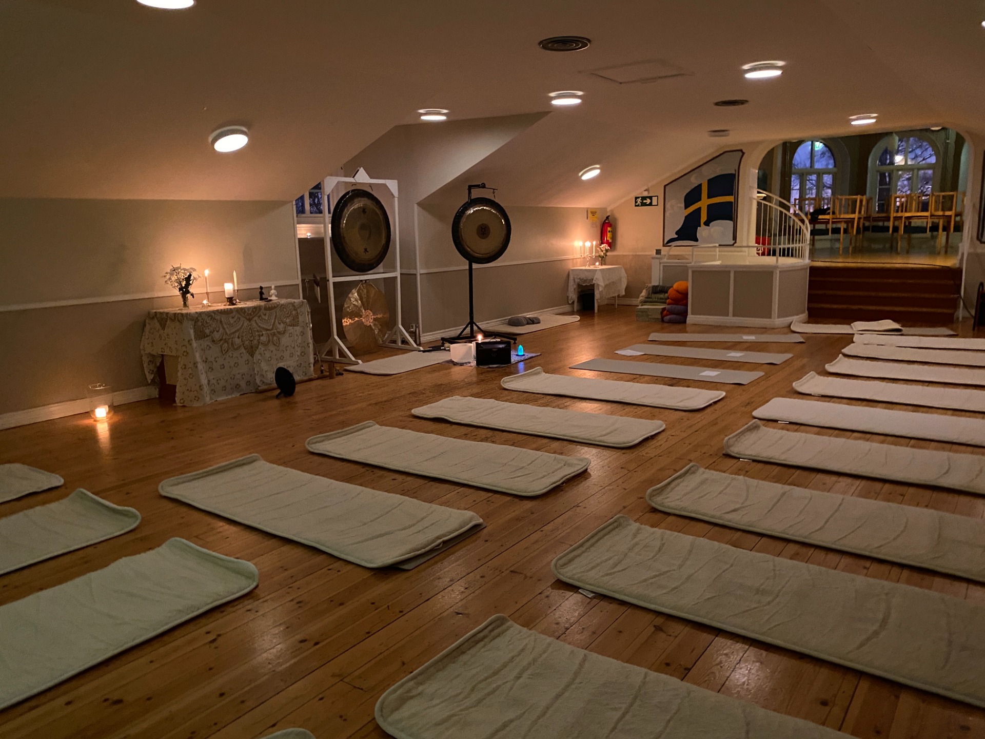Vi startar kvällen med en stunds mjuk yoga, därefter guidas du genom en sound journey med meditativa ljudlandskap skapade av bland annat gongar, klangskålar, trumma och andra resonanta instrument. Ljudvågorna hjälper kroppen att slappna av, sinnet att stillna och öppnar ett rum för återhämtning, insikt och närvaro. Det blir en resa in i solens ljus.